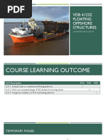 The major categories of environmental loads are not included. They are dealt with in Lecture 15A.2. 1. PERMANENT (DEAD) LOADS Permanent loads include the following: a. Weight of the structure in air, including the weight of grout and ballast, if necessary. b. Weights of equipment, attachments or associated structures which are permanently mounted on the platform. c. Hydrostatic forces on the various members below the waterline. These forces include buoyancy and hydrostatic pressures. Sealed tubular members must be designed for the worst condition when flooded or non-flooded. 2. OPERATING (LIVE) LOADS Operating loads arise from the operations on the platform and include the weight of all non-permanent equipment or material, as well as forces generated during operation of equipment. More specifically, operating loads include the following: a. The weight of all non-permanent equipment (e.g. drilling, production), facilities (e.g. living quarters, furniture, life support systems, heliport, etc), consumable supplies, liquids, etc. b. Forces generated during operations, e.g. drilling, vessel mooring, helicopter landing, crane operations, etc. The necessary data for computation of all operating loads are provided by the operator and the equipment manufacturers. The data need to be critically evaluated by the designer. An example of detailed live load specification is given in Table 1 where the values in the first and second columns are for design of the portions of the structure directly affected by the loads