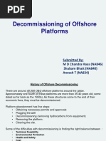 4.10 Removal Removal requirements are different from country to country. In some depths of water full removal is required in some countries from the mudline upward. Elsewhere only the structure 75 m or more above the mudline must be removed. Extensive engineering of removal is required to achieve a safe and effective operation. In the Gulf of Mexico removed structures are dumped in the form of reefs. It is very difficult and inefficient at present to include conceptual removal engineering in the design phase. When re-use of the facility is planned, then removal engineering should be developed early in the design. 5. CONCLUDING SUMMARY Structural systems for each type of topside structure were introduced, i.e. truss, portal, box girder, and stressed skin systems. In the section on design some topics were addressed in more detail. In the section on construction the different phases were presented in more detail, i.e.