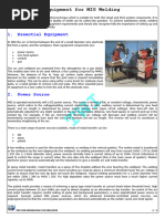 A Transformer/Rectifier (Constant voltage type) A power and power return cable An Inert, active, or mixed shielding gas (Argon or CO) Gas hose, flow-meter, & gas regulator MIG torch with hose, liner, diffuser, contact tip & nozzle Wire feed unit with correct drive rolls (Push or Pull) Electrode wire to correct specification and diameter Correct visor & glass, all safety clothing and good extraction*