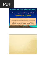 In MMA/SMAW the only consumables used are short electrodes, which are covered in a flux coating This flux coating has many functions and there are many different types These functions are not limited too, but include: 1) To aid arc striking 2) To stabilize the arc 3) Form a shielding gas 4) To add de-oxidants 5) To add alloying elements 6) To form a protective slag 7) To refine solidifying metal 8) To control hydrogen content *