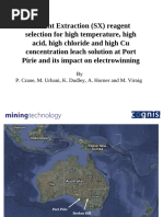 Figure 6: Typical pressure filter used for crud filtration *Leach solution can vary from 1.8 g/l to 3.9 g/l Feed Solution O:A Organic (g/l) Cu H2S04 Extract Loaded Stripped 3.25 8.6 1.22:1 4.60 2.20 3.04 6.8 1.22:1 4.50 2.20 3.09 2.6 1.11:1 4.65 2.00 2.98 3.7 1.54:1 3.92 2.10 *Lead-alloy anode Stainless steel cathode *Mixing flow rate 4.4 6.1 m3/h/m2 *Settling flow rate 2 6 m3/h/m2 R Seecharran Concentrator Manager Raffinate Cu 0.32 0.22 0.17 0.17 Spent Cu H2SO4 42.6 172 49.1 170 42.8 173 42.8 173