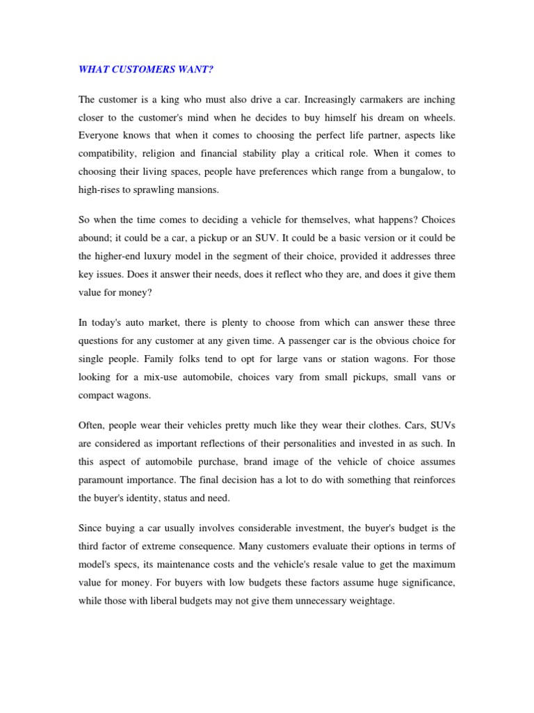 WHAT CUSTOMERS WANT? The customer is a king who must also drive a car.
