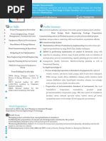 Detail of Employment & Experience: A. Marudwar Industries, Pune. : Nov.1989 Apr.1990 As Mechanical Engineer. Fabrication of Process Equipments, repairing & overhauling of old Process Equipment, Machines and its worn out parts. Customer Interaction, Design, Drawing Interpretation, Planning etc. B. Usha Domestic Consumer Products, Pune : Apr.1990 Aug.1991 As Project Engineer. Design, Procurement, Inspection, Fabrication, Erection, Commissioning, Operation & Maintenance of Acid slurry Manufacturing Plant by Sulphonation process of LAB with Oleum to make Liquid Soap, Detergent powder. C. Northern Steel Pvt. Ltd., Ahmadabad : Aug. 1991 May 1992 As Project Engineer Promoted to Site In-Charge. Fabrication, and Erection of various Structural and Piping work at their Site kakrapara Atomic Power Station of Nuclear Power Corporation of India. D. E.