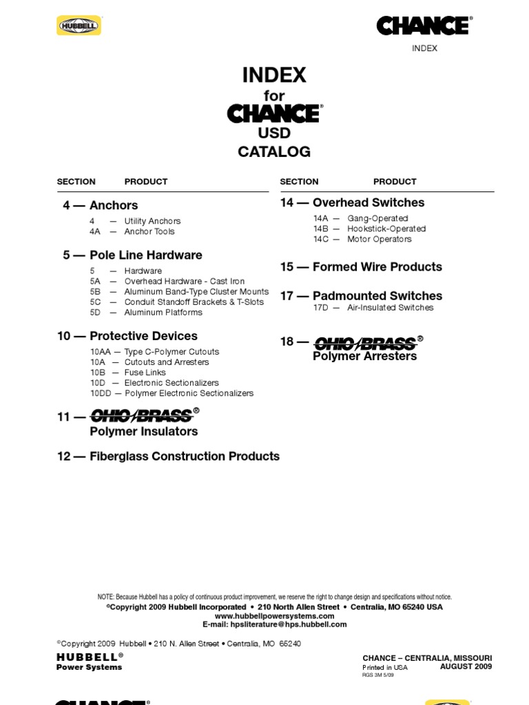 Copyright 2009 Hubbell Incorporated 210 North Allen Street Centralia, MO 65240 USA