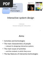 In groups of 2/3 identify 1. People, activities, contexts, technologies of an in-flight entertainment system using the pointers above. 2. What are the design implications?