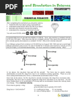 Table 2: Parameter Estimates for a Typical Skydiver and Equipment. The times are based on averages taken from real life jumps performed by the United States Air Force Academy at an altitude of 4000 ft. The free-fall lasts for a total of 10 seconds making t0 = 10 s. Independent of the value of t0 the Snatch force occurs around t1 t0 which is 0.5 s after the ripcord is pulled at t0 . The force of the opening parachute occurs at t2 t1 = 1.0 s. The complete time for this type of deployment to occur after the ripcord is pulled is 3.2 s. Therefore, t3 t2 = 1.7 s. The entire jump from free-fall to steady-state of the parachute lasts for 13.2 seconds. The following is a summary of the denitions of the cross-sectional areas and drag coecients for the body and equipment at any specic time during the jump. As well as a piece-wise function for k, a compilation of the summary of drag forces, we have also included gure 2 and 3 to help correlate the information found in the cases with the dierent stages of the jump. The area of the body of the skydiver is dened by the following cases: b0 , t t0 b0 , t 0 < t t1 b A (t) = b1 , t 1 < t t2 b1 , t 2 < t t3 b , t > t3 1