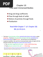 To develop a more realistic model of a parachute jump we will need to consider some basic principles of uid mechanics, principally the relationship between drag and velocity. Essential in this relationship is the connection between viscous and pressure forces. In uid mechanics this is often accomplished with a non-dimensional variable, called the Reynolds Number. In general Re = dv/, where is the uid density, d is the length normal to the ow, v is the characteristic velocity, and is the uid viscosity. When viscous forces dominate, we have low Reynolds number ows (Re < 1), and the drag is linear in velocity. However, when pressure forces dominate (Re > 103 ), the drag is quadratic in velocity.[7] To determine which of these relationships is most appropriate for a skydiver, it is necessary to estimate the Reynolds number. For this model we will assume that the density and viscosity are essentially constant at altitudes appropriate for skydiving. Therefore, 1 kg/m3 , and 1.5 x 105 kg/m/s.[4] The characteristic velocity will be dened by the terminal velocity. With the chute fully deployed, it is frequently said to be equivalent to v 5.3 m/s.[5] During free-fall vt 45m/s 100 mile/hr. The fully deployed parachute presents a cross section of A 44 m2 giving d 7.5 m. A skydiver in a horizontal position presents a cross-section to the ow of A 0.5 m2 giving d 0.8 m. Thus, Re > 106 before and after chute deployment and the force due to the drag can be estimated by 1 Fd = (Cd Av 2 ).[1] 2 Cd , the coecient of drag, is determined by the shape of the body and is usually found experimentally. Table 1 provides the necessary values for our model. Drag forces are produced by the skydivers body, the suspension lines, and the canopy. Parachute deployment is accomplished by various methods. We will, however, model the lines-rst release where the parachute remains in a deployment bag until the risers and suspension lines are fully extended. This can be modelled in four distinct stages. First, the ripcord is pulled at t = t0 . In between t0 and t1 is the period it takes for the extension