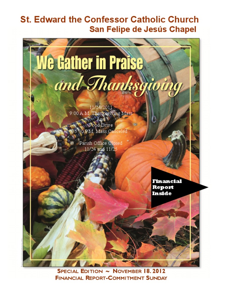 11/24/2011 9:00 A.M. Thanksgiving Mass And Food Drive 5:30 P.M. Mass Canceled Parish Office Closed 11/24 and 11/25