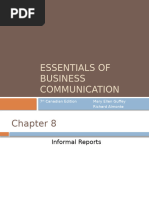 Then to increase the understanding of the Informal Report, interpret it as below. Such a structured format would assist the reader assess the reports meaning, also taking into account the speed of understanding for the reader. 1. Title page 2. Summary 3. Introduction 4. Findings 5. Recommendation(s) 6. Appendices (If needed)