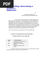 b) Funnel Beginning with a broad topic then zeroing in on the thesis statement - For the beginning writer, creating a whole new composition seems a daunting task. Much like anything one has not tried before, writing poses too many unknowns. However, much like anything one learns over time, the more you know about it, the easier it becomes. So when you find out what those unknowns are, you realize that writing is not such a difficult chore after all. 2. Activity: (10 minutes) a) Think of a thesis statement for any of these topics: My Christmas wish The ideal Christmas My dream vacation b) Choose a kind of introduction to use and write a 2-5 sentence introduction for it 3. Introductions to avoid (5 minutes) a) Cliches In starting a new essay, it is best to start with a clean slate. Writing isnt all fun and games to most people. b) The Definition of a Well Known Word: Making a drafta completed version of a writing which may be rewritten, revised, or polished is how a writer sees every work. c) The Announcement You want to write. You think its very difficult to do that. d) The Time Traveler So you see yourself as a successful writer in the future. e) The Commonality What do novelists, essayists, reporters and scriptwriters have in common? 4. Activity (15 minutes) a) Write your introduction for the thesis statement you created earlier b) Find a partner and exchange introductions c) Give suggestions to improve our partners work 5. Conclusion: (5 minutes) a) Recap b) Collect introductions for grading