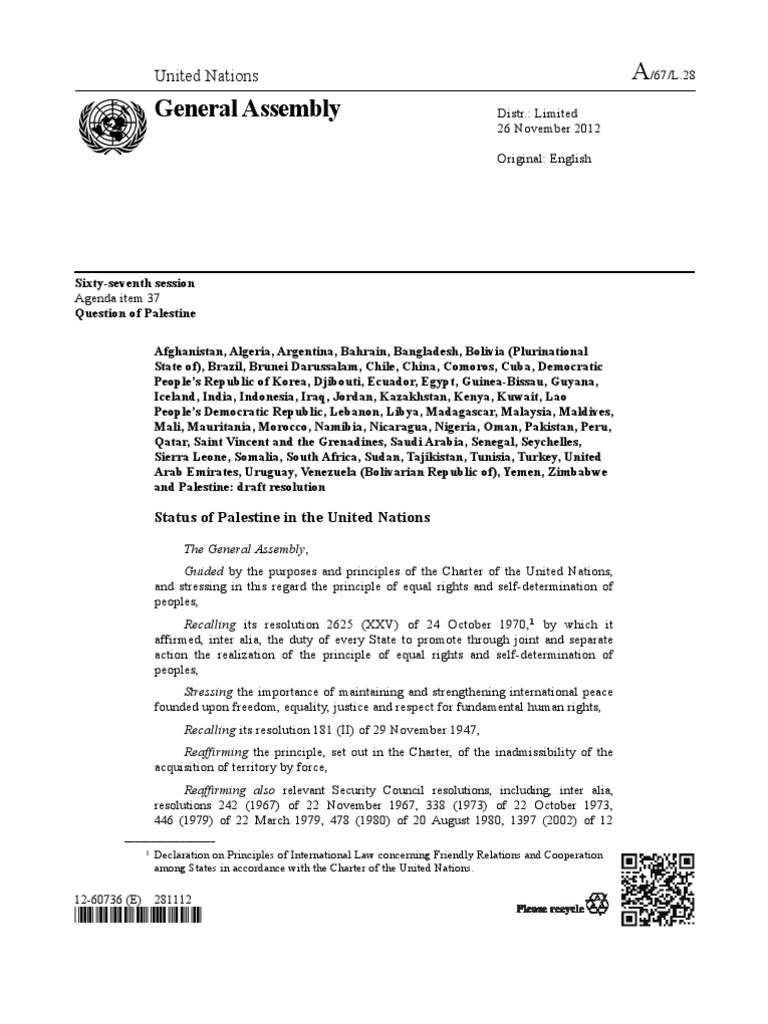 The General Assembly affirmed the duty of every State to promote the realization of the principle of equal rights and self-determination of peoples. Reaffirming also relevant Security Counci…