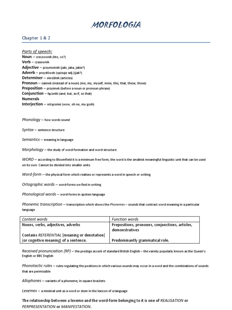 Phonology how words sound Syntax sentence structure Semantics meaning in language Morphology the study of word-formation and word-structure WORD according to Bloomfield it is a minimum free form; the word is the smallest meaningful linguistic unit that can be used