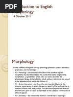 Affixes any morphemes that are appended to the root. It can be attached before or after the base. There can be: o Suffix an affix appended after the base (-ness, -ly) o Prefix an affix that goes before the base (im-) o Infix an affix that is inserted inside (Minnebloodysota), but English has no bound infix morphemes Clitics a class of bound morphemes which are attached at the margins of words but which are not affixes, they co-habit with a