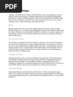 maximum amount of stretching steel can bear before it becomes permanently deformed or before it loses its ability to return to its original shape. Grade A steel pipe has lower tensile and yield strengths than Grade B steel pipe. This is because it has a lower carbon content. Grade A in more ductile and is better for cold bending and close coiling applications. Grade B steel pipe is better for applications where pressure, structural strength and collapse are factors. It is also easier to machine because of its higher carbon content. It is generally accepted that Grade B welds as well as Grade A. Ends: Steel pipe can generally be specified with a specific end preparation at the time of purchase. Three end preps are standard. There is plain end (PE). This would be the choice for small sizes where socket welded fittings will be used to join pipe to pipe or pipe to fittings. This is also the default end prep if no end prep is specified. There is threaded end (TE). This would be the choice for small sizes where the pipe to pipe or pipe to fitting assembly is to be threaded. There is also bevel end (BE). This would be the choice for most all 3" and larger steel pipe (or other metallic pipe) where "butt welding will be used to join pipe to pipe or pipe to fittings. Section - I C: Fittings (Just the basics) By: James O. Pennock Definition: A fitting is a pipe item used for changing direction, branching or attaching in a piping system. There are many different types of fittings and they are produced in all the same sizes and weights (schedules) as the pipe. Fittings are commonly segregated into three groups; Buttweld, Socket-weld and Screwed. Only the most common will be discussed in this article.