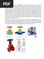 Butterfly valve, particularly in large pipes; A Butterfly valve is a type of flow control device, used to make a fluid start or stop flowing through a section of pipe. The valve is similar in operation to a ball valve. A flat circular plate is positioned in the center of the pipe. The plate has a rod through it connected to a handle on the outside of the valve. Rotating the handle turns the plate either parallel or perpendicular to the flow of water, shutting of the flow. It is a very robust and reliable design. However, unlike the ball valve, the plate does not rotate out of the flow of water, so that a pressure drop is induced in the flow. Gate valve, mainly for on/off control; A gate valve is a valve that opens by lifting a round or rectangular gate out of the path of the fluid. Gate valves are sometimes used for regulating flow, but many are not suited for that purpose, having been designed to be fully opened or closed. When fully open, the typical gate valve has no obstruction in the flow path, resulting in very low friction loss.