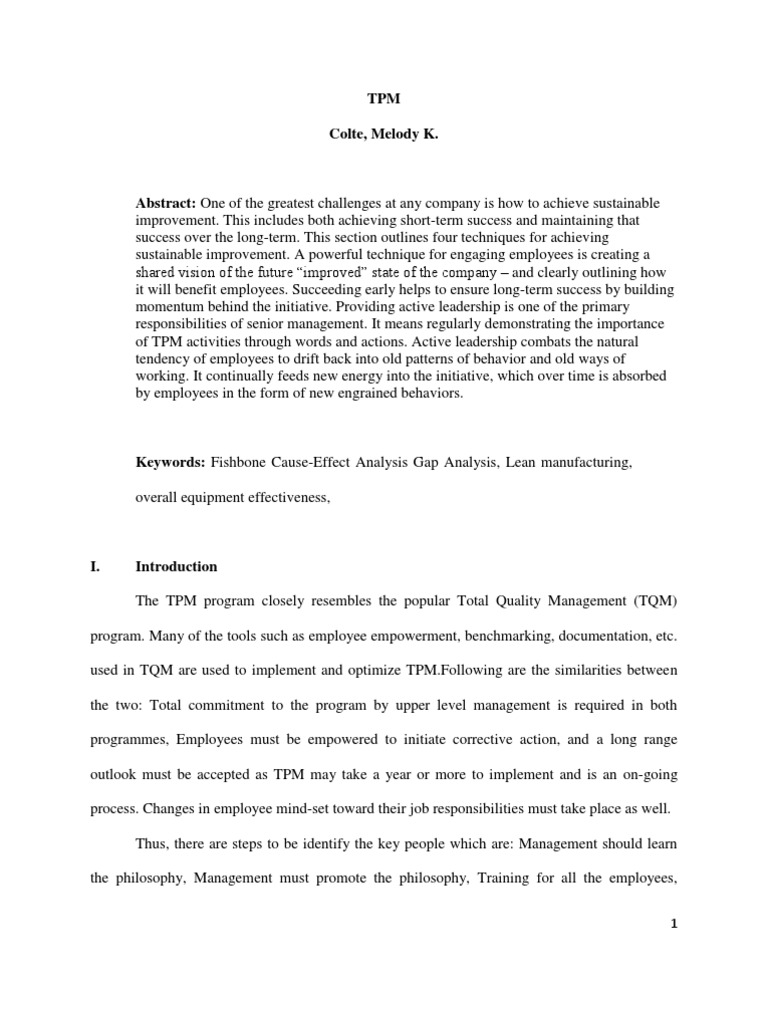 Introduction The TPM program closely resembles the popular Total Quality Management (TQM)