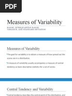 The interquartile range is another useful measure of dispersion or spread. It is used when the median is used as the measure of central tendency. It gives the range in which the middle 50% of the distribution lies. In order to describe this in detail, we rst need to discuss what we mean by quartiles.