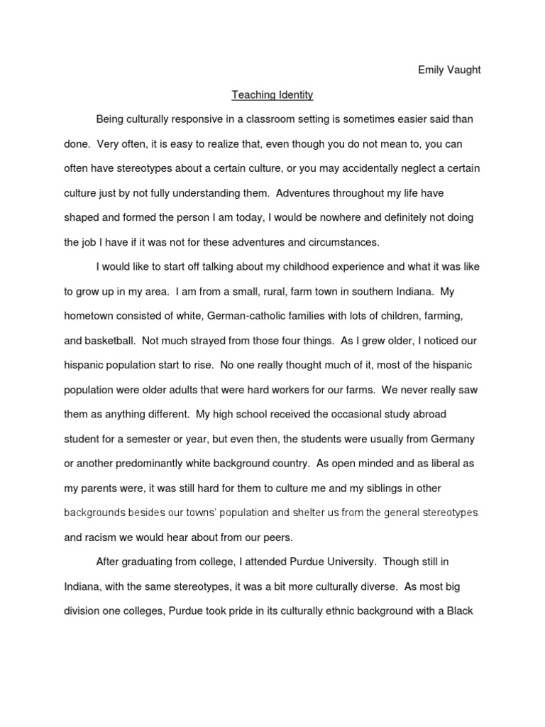 Emily Vaught Teaching Identity Being culturally responsive in a classroom setting is sometimes easier said than done.