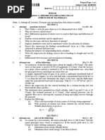 OR A section of a beam shown in Fig. 6, has moment of inertia about neutral axis is 11.6 x 106 mm4. The section is subjected to shear force of 14.5 kN. Determine value of maximum shear stress on the section. Draw neat qualitative shear stress distribution sketches of following sections, indicating position of maximum shear stress. (i) H section (ii) Solid circular section (iii) L section (iv) I - Section A concrete member 90 mm wide X 120 mm deep and 3m long, has central axial longitudinal hole of diameter 30 mm throughout the length of member. A steel cable of 10mm diameter is passed through the hole end to end and fitted by nuts supported on rigid plates provided at the ends of beam, such that initially cable is stress free. Now the cable is tightened by turning the nuts, to reduce the length of the cable by 6 mm. Determine stresses in steel and concrete due to reduction in length of cable. Take Es = 210 GPa and Ec = 14 GPa. Determine moment of resistance of a section of a beam shown in Fig.7, if allowable bending stress is 230 MPa. Calculate shear force and bending moment at points A, B, C, D and E. for the beam shown in Fig. 8. Also plot neat shear force and bending moment diagrams indicating values at above points. Locate point of contraflexure from support B. OR Derive condition of reversibility of a simple lifting machine with usual notations. A thin cylindrical shell of internal diameter d, length and thickness t is subjected to internal pressure p. Derive formula for hoop stress and longitudinal stress. Determine magnitude, direction and perpendicular distance from O, of the resultant for the force system shown in Fig. 9. A wire is tied straight between two rigid poles 10 m apart has initial tensile stress 10 N/mm2 at 32 C. Calculate stress in wire if temperature reduces to minus 8 C. Take E = 75 x 105 N/mm2 and = 20 x 10 -6 / C. A square steel plate 50 mm x 50 mm and 20 mm thick is subjected to axial tensile force in horizontal and vertical direction 80 kN and 120 kN respectively as shown in Fig10. Calculate normal and tangential stresses on plane inclined at 30 to the plane carrying 80 kN force. Also calculate resultant stress and angle of obliquity. A rectangular block of size 300mm x 150mm x 100mm is subjected to forces as shown in Fig. 11. If E = 75 GPa and poissons ratio is 0.25, calculate (i) Change in volume (ii) Modulus of rigidity and (iii) Bulk modulus. OR Discuss briefly limitations of compression test on materials. A beam is loaded as shown in Fig. 12. Determine support reactions at supports A and B. Also identify type of beam. Calculate shear force, bending moment and axial thrust at points A, B, C and D for the beam shown Fig. 13. Also plot neat shear force, bending moment and axial thrust diagrams indicating values at above points.