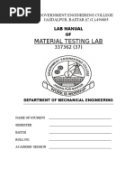 Result: The stress of given specimen is ___lbs / mm2 Precautions: 1. Avoid stresses in the test piece other than due to applied load. 2. To avoid vibration during the test, co-axially of the test piece and the driving 3. Shaft of the testing machine should be maintained within close limits. 4. The load should be applied after the desired speed has been attained. 5. The load should be applied incrementally or continuously to obtain the desired value. 6. The relative humidity should be 50 to 80%.