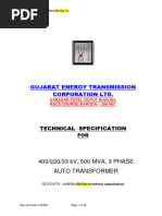 8.2.1.1 The transformers shall be provided with delta-connected primary and a starconnected secondary with the star point brought out and resistance earthed for 3.3kV system and solidly earthed for 415V system. 8.2.1.2 The transformers shall have following technical parameters : a) b) Type Service Two winding Outdoor (Oil Filled) / Indoor (Dry type : epoxy cast resin/ resin encapsulated type) However, indoor dry type shall be preferred) Three 50 Hz ONAN for oil filled/ AN for dry type As per system requirement. As per system requirement. Continuous As per IS:6600 40 kA for 1 second 40 kA for 1 second 50 kA for 3 second 3.3 kV 11 kV -----Uniform---28 75 12 10 40 3.6 3 -1.1