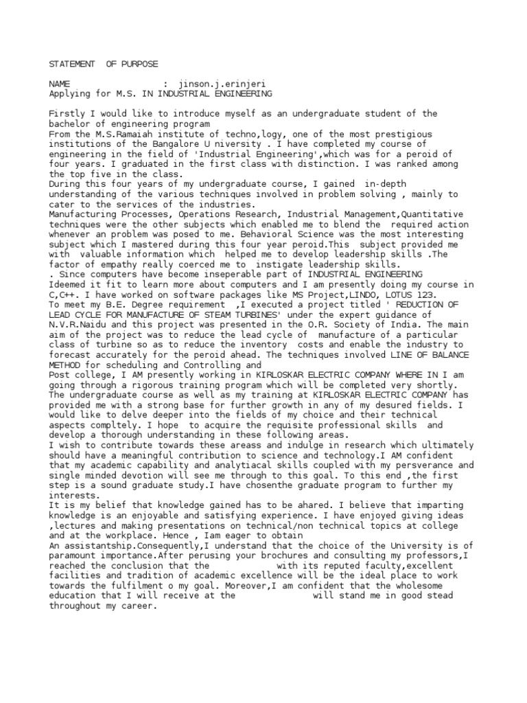engineering in the field of 'Industrial Engineering',which was for a peroid of