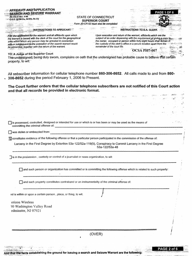 :;r12.lt&-li.itllendersignedaffiant,Insp~0of'ID.0lIglasJowett~isamemberofthe~tate~f~oIfil8Gttcut-~lvIsi~-:..qf.~m~.(ust~~~gnedtothePublic.Jntegrit}fBurea~inth~OffkF'oitheChief',State'sjAttorti~¥~h~yipgni~th.~~et~~9~?:yearsexperienceinthefieldoflawenfQrcementandcriminahnvestigation.Atalltimes'mentiotredherein:,tnertifitlerSign~was'ictinginhisofficialcapacityasa.memberoftheaforementionedagency.Thefollowingfactsandcircumstancesarerelmedfronipersonalknowledgeand/or:oQseryation&andincludeinfonnatiortrelatedtothisaffiant