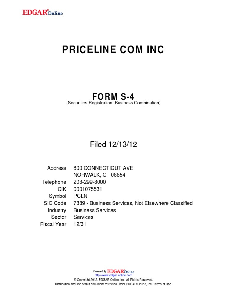 of the Registration Statement on Form S-4 of priceline (the "Registration Statement").