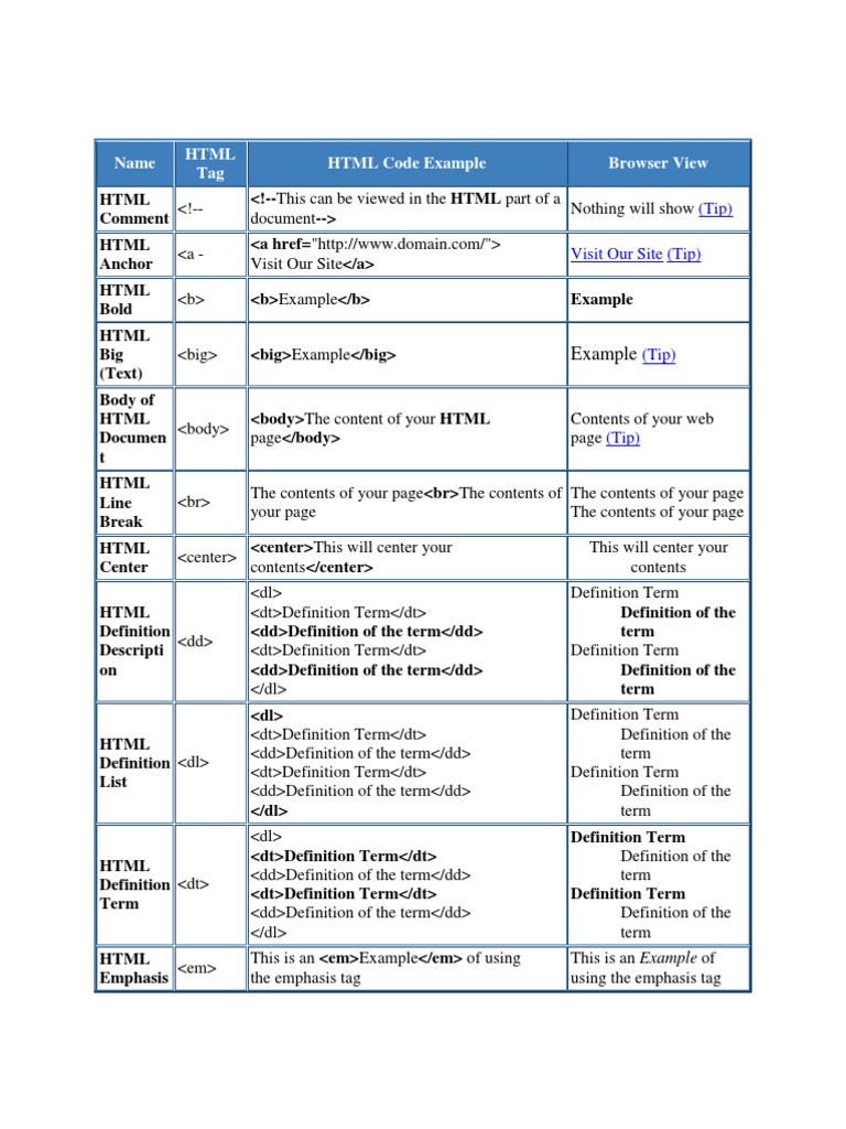 <!--This can be viewed in the HTML part of a Nothing will show (Tip) document--> <a href="http://www.domain.com/"> Visit Our Site</a> <b>Example</b> <big>Example</big> Visit Our Site (Tip) Example