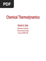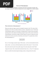 6 in A happen to be moving to the right while only a few atoms in B are moving to the left in the course of their oscillations. But, while admitting that this is in principle possible and not outside the laws of physics, it is exceedingly unlikely to happen in practice; indeed so unlikely as hardly to be taken seriously. Thus, in any natural, spontaneous process, without the intervention of an External Intelligence, it is almost certain that there will be a net transfer of heat from B to A. And this process, barring the most unlikely set of circumstances, is irreversible. The hot body will lose an amount of entropy dQ/T2, while the cool body will gain an amount of entropy dQ/T1, which is greater than dQ/T2. Thus the entropy of the isolated system as a whole increases by dQ/T1 dQ/T2. From this argument, we readily conclude that any natural, spontaneous and irreversible thermodynamical processes taking place within an isolated system are likely to lead to an increase in entropy of the system. This is perhaps the simplest statement of the Second Law of Thermodynamics. I have used the phrase "is likely to", although it will be realised that in practice the possibility that the entropy might decrease in a natural process is so unlikely as to be virtually unthinkable, even though it could in principle happen without violating any fundamental laws of physics. You could regard the Universe as an isolated system. Think of a solid Body sitting somewhere in the Universe. If the Body is hot, it may spontaneously lose heat to the Rest of the Universe. If it is cold, it may spontaneously absorb heat from the Rest of the Universe. Either way, during the course of a spontaneous process, the entropy of the Universe increases. The transference of heat from a hot body to a cooler body, so that both end at the same intermediate temperature, involves, in effect, the mixing of a set of fast-moving molecules and a set of slowmoving molecules. A similar situation arises if we start with a box having a partition down the middle, and on one side of the partition there is a gas of blue molecules and on the other there is a gas of red molecules. If we remove the partition, eventually the gases will mix into one homogeneous gas. By only a slight extension of the idea of entropy discussed in courses in statistical mechanics, this situation can be described as an increase of entropy called, in fact, the entropy of mixing. If you saw two photographs, in one of which the blue and red molecules were separated, and in the other the two colours were thoroughly mixed, you would conclude that the latter photograph was probably taken later than the former. But only "probably"; it is conceivable, within the laws of physics, that the velocities of the blue and red molecules separated themselves out without external intervention. This would be allowed perfectly well within the laws of physics. Indeed, if the velocities of all the molecules in the mixed gases were to be reversed, the gases would eventually separate into their two components. But this would seem to be so unlikely as never in practice to happen. The second law says that the entropy of an isolated system is likely (very likely!) to increase with time. Indeed it could be argued that the increase of entropy is the criterion that defines the direction of the arrow of time. (For more on the arrow of time, see Section 15.12 of the notes on Electricity and Magnetism of this series. Also read the article on the arrow of time by Paul Davis, Astronomy & Geophysics (Royal Astronomical Society) 46, 26 (2005). Youll probably also enjoy H. G. Wellss The Time Machine.)