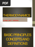 1 The First Law of Thermodynamics, and Internal Energy The First Law of thermodynamics is: The increase of the internal energy of a system is equal to the sum of the heat added to the system plus the work done on the system. In symbols: