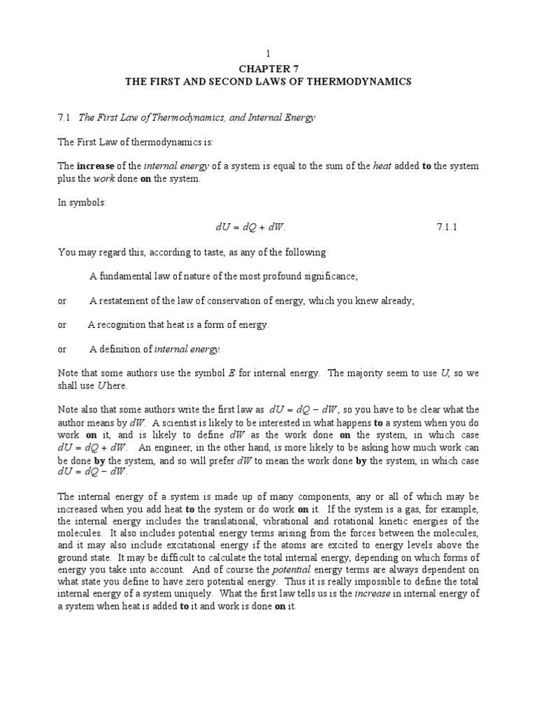 1 CHAPTER 7 THE FIRST AND SECOND LAWS OF THERMODYNAMICS 7.