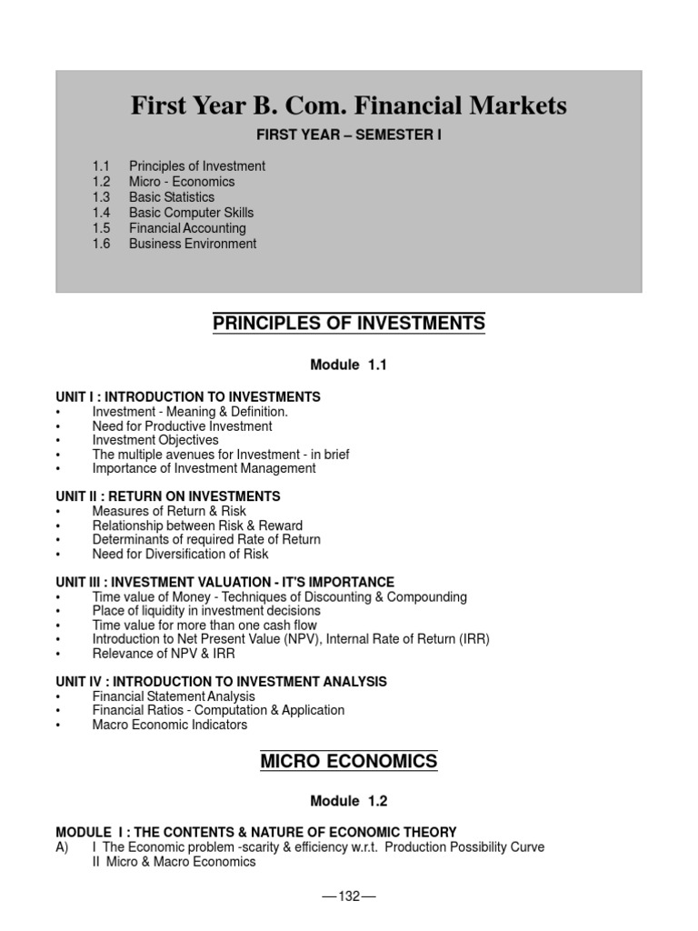 1.1 1.2 1.3 1.4 1.5 1.6 Principles of Investment Micro - Economics Basic Statistics Basic Computer Skills Financial Accounting Business Environment