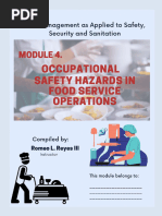 Meeting #1: Identifying Hazards. Employees will use a checklist to identify key hazards in your restaurant. They will mark the hazards with Post-it notes during a walk-through of the restaurant. As an alternative, they may draw a simple oor plan of the restaurant and mark the hazards on this hazard map. Meeting #2: Controlling Hazards. Employees will learn about strategies for controlling workplace hazards. Working in pairs, they will brainstorm and discuss concrete steps that can be taken to correct the most signicant hazards they identied before. These steps will include both changes that can be made by management and changes they can make themselves in doing their work. Materials needed