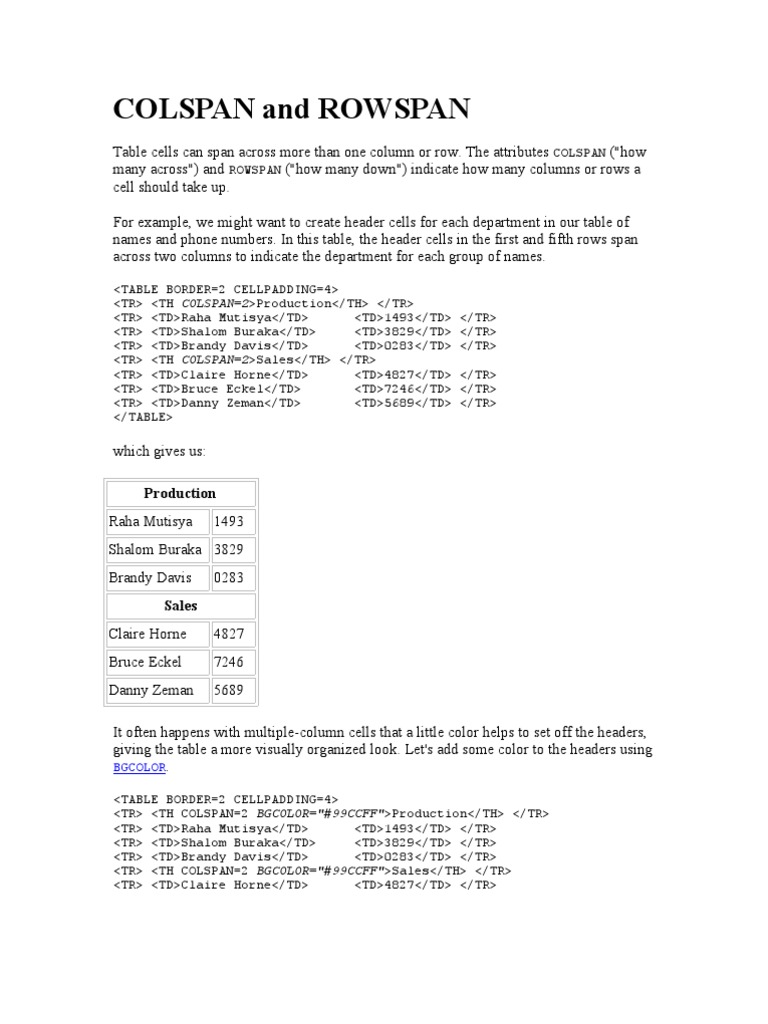 <TABLE BORDER=2 CELLPADDING=4> <TR> <TH ROWSPAN=3 BGCOLOR="#99CCFF">Production</TH> <TD>Raha Mutisya</TD> <TD>1493</TD> </TR> <TR> <TD>Shalom Buraka</TD> <TD>3829</TD> </TR> <TR> <TD>Brandy Davis</TD> <TD>0283</TD> </TR> <TR> <TH ROWSPAN=3 BGCOLOR="#99CCFF">Sales</TH> <TD>Claire Horne</TD> <TD>4827</TD> </TR> <TR> <TD>Bruce Eckel</TD> <TD>7246</TD> </TR> <TR> <TD>Danny Zeman</TD> <TD>5689</TD> </TR> </TABLE>