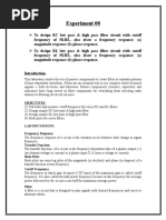 * Show from the transfer function that the amplitude response at high frequency is 6dB/ octave, namely the output decreases by a factor of 2 when the frequency doubles. Measure the amplitude response at 20 kHz and 40 kHz to check for 6 dB/octave. Parallel RLC Circuits As an example of a parallel circuit, consider the filter Figure 4 and calculate its transfer function. *Explain why this is a notch filter. What is the frequency of the notch? Use L = 27 mH, C = 0.047 F and R = 150 . Measure the depth of the notch by comparing the response at the bottom of the notch with the response at low or high frequency. Why doesnt the response go to zero at the bottom of the notch? Asymptotic notation A filter can be described by its asymptotic frequency dependence. Although the transfer function may be a complicated complex function of frequency, the asymptotic characteristic is simple. For example, a low-pass filter may have a transfer function that is inversely proportional to frequency in the limit of high-frequency. We say, H() -1. In general H () n, where n is a negative number for a low-pass filter. In the asymptotic limit, a filter has a gain characteristic of 20 n decibels per decade (dB/decade). Proof: The gain characteristic in dB is L = 20 log |H()|. If increases by a factor of 10 (one decade) then the change in level is L = 20 log |H(10)/H()|, and this is just L = 20 log[10n] = 20n. Similarly, the asymptotic dependence can be given in dB/octave. Whereas a decade is a factor of 10 in frequency, an octave is a factor of 2 in frequency. If the asymptotic frequency dependence is, again, H() n , then this is just L = 20 log[2n] = 6n.