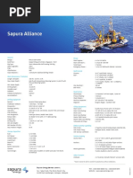 DRILLING EQUIPMENT Derrick Pyramid 152-ft telescopic Drawworks National 1320-UE 2000 HP Drill pipe capacity 6000 m x 5" S135 NC-50 Top drive Varco TDS-4S 1100 HP Rotary table National C-375 with 37 " Power Tong Nil - Operator supplied Drilling Line 35 mm OD x 2285 m Hookload/ Setback 340 MT/ 181 MT DES dry weight 606 MT DES number of lifts 22 Platform height 27.5 m above msl