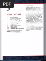 many situations. It is a part of the basic "tool box" that an expert in an area acquires as s/he becomes an expert. Series Combinations of Resistors Two elements are said to be in series whenever the same current physically flows through both of the elements. The critical point is that the same current flows through both resistors when two are in series. The particular configuration does not matter. The only thing that matters is that exactly the same current flows through both resistors. Current flows into one element, through the element, out of the element into the other element, through the second element and out of the second element. No part of the current that flows through one resistor "escapes" and none is added. This figure shows several different ways that two resistors in series might appear as part of a larger circuit diagram.