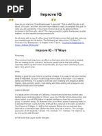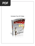 one-way street. Or perhaps there was a dog in one car who, excited by the sight of a dog on the side of the road, jumped onto the driver's lap; the driver lost control, and hit the other car. Expansive observations can be to more productive areas as wellarchitecture, art, and astronomy, for example, and that's just starting with the the As! 7. Listen to classical music. The Mozart effect have show that by listening to classical music for 7 only 10 minutes, a short-term improvement of eight or nine points can be measured. This could have a longer-term effect, but may take somebody with a large IQ to prove it! 8. Exercise. Keeping your body fit as well as your mind is a greatand scientifically provenway 8 to enhance brain power. 9. Read voraciously. Reading enhances the mind's ability to comprehend, as well as 9 encouraging you to think critically. Reading a book that you have never read before broadens your horizons, thus increasing your IQ. Reading different genres is even more productive, as well as reading newspapers, current events magazines, multi-content periodicals (such as the New Yorker), even technical manuals. Make sure the book is in your reading level. Reading something that is too easy for you doesn't do anything but entertain, and while you may increase your IQ by reading a novel beyond your reading level, constantly referring to a dictionary will sap the joy out of reading. 10.Perseverance furthers. Ignore limiting stereotypes such as "An old dog cannot learn new 10 tricks." Imagine the success you will feel when you bump your IQ score up ten points! Like anything else, your brain functions better when used. Actively exercising your brain has even been linked to staving off problems such as Alzheimer's Disease.[3] 11. Write whenever possible. Send a note instead of an email, or write a draft of a paper (or an 11 outline) in longhand versus on your computer. It will increase visual and kinesthetic stimulation. Try writing with your non-dominant hand. Writing with your opposite hand can, in fact, lead to stimulation of the side of the brain that is opposite to that hand. So perhaps a southpaw could go righty and think more logically, or a righty could try going left-handed to be more creative. Keep in mind this is only a hypothesis, but worth exploring. 12.Play video games. Games can be a great way to stimulate the brain. Try to play a game 12 that is out of your usual range of choices. It will help you think differently. Especially look for games that provide you with problems to solve or force you to think quickly. Scientific studies have shown that playing the popular game Tetris leads to more efficient brain activity; as players become more proficient at the game, their brains show a reduced consumption of glucose (the body's main fuel).[4] The conclusions of this study point out that glucose consumption is reduced when learning has taken place. This would be expected as when a person becomes more proficient in any activity, the effort required decreases. When playing first person shooter games, try to get into the atmosphere, look at details, think every move as if it were real. This way you don't mindlessly finish the game, and you stimulate the brain to think more than just using reflexive actions. 13.Work on challenging your brain in new ways. Try cryptology, for example. This is when a 13 message is written in codes and you try to figure it out. It's challenging for some, but after a while may even become enjoyable. All logic puzzles are great. Do logic and lateral thinking puzzles. These help you explore new areas, and solve problems in different ways. Practice crosswords and sudoku. These activities stimulate your mind and thought processes. People may not normally consider word searches thought-provoking, but if practiced in addition to other mind games, they could prove to be easy and stimulating. 14.Keep track of your progress. Take a weekly IQ test and record your results. If you would 14 like to view your improvements, consider placing the results on a line graph using Excel or another graph-compatible spreadsheet program. (See external links for a free, tested online IQ test). Bear in mind that many online IQ tests are not legitimate, and many ask for a mobile number at the end for the results. These are spam. The IQ quiz that could be considered the true IQ quiz is the StanfordBinet and is the only true IQ test accepted by universities. 15.Excel in school and have a better career. There is a huge amount of evidence 15 substantiating the correlation between excellent grades and better intelligence. Good grades are the path to better careers and better ways of life. Scientific encephalopathy case studies show that the brains of sophisticated professionals are anatomically larger, healthier and having more prominent convolutions, whereas the labour workers