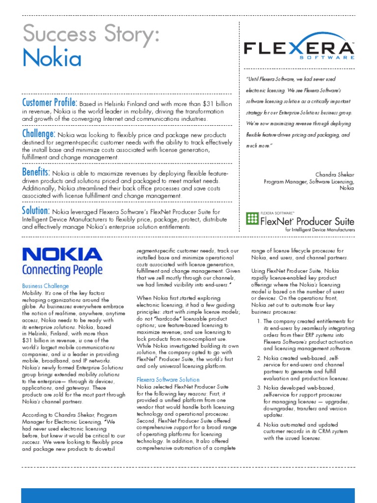Solution: Nokia leveraged Flexera Softwares FlexNet Producer Suite for