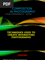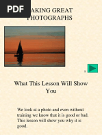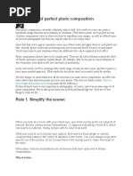 Keep the corners and edges clean. Example: Tree branches should not touch the edge of the photo Eliminate distracting elements If it doesn't contribute to the overall image, get rid of it. Golden hour - 1 hour after sunrise, 1 hour before sunset