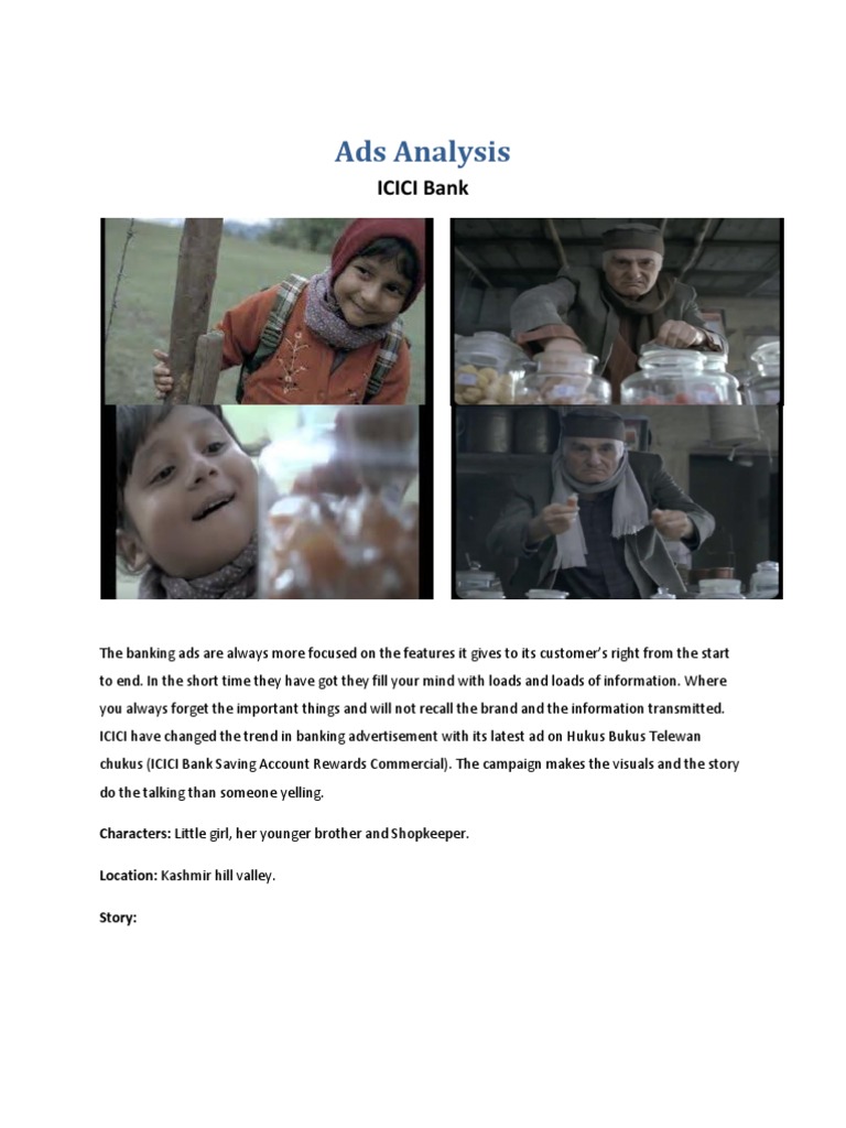 The banking ads are always more focused on the features it gives to its customers right from the start to end. In the short time they have got they fill your mind with loads and loads of information. Where you always forget the important things and will not recall the brand and the information transmitted. ICICI have changed the trend in banking advertisement with its latest ad on Hukus Bukus Telewan chukus (ICICI Bank Saving Account Rewards Commercial). The campaign makes the visuals and the story do the talking than someone yelling. Characters: Little girl, her younger brother and Shopkeeper. Location: Kashmir hill valley. Story:
