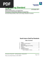 Surface Preparation 6.1 6.2 Surface cleanliness requirements are given in SAES-H-002, APCS-107 and APCS-109. If solvents are used they shall be a type that does not leave a greasy residue on the surface. Diesel fuel and/or kerosene shall not be used for this purpose unless the surface is subsequently cleaned with a non-greasy solvent. Weld splatter, weld slag, sharp edges, burrs, snarls, and any other sharp surface discontinuities shall be removed prior to coating. If the tape is to extend onto thick coatings such as extruded polyethylene (APCS-105), extruded polypropylene (APCS-114), or coal tar enamel (APCS-106) the thick coating shall be evenly feathered (chamfered) for a minimum distance of 50 mm back from the bare steel interface.