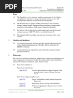 Conflicts and Deviations 2.1 Any conflicts between this procedure and other applicable Saudi Aramco Engineering Standards (SAESs), Materials System Specifications (SAMSSs), Standard Drawings (SASDs), or industry standards, codes, and forms shall be resolved in writing by the Company or Buyer Representative through the Manager, Consulting Services Department of Saudi Aramco - Dhahran. Direct all requests to deviate from this procedure in writing to the Company or Buyer Representative, who shall follow internal company procedure SAEP-302 and forward such requests to the Manager, Consulting Services Department of Saudi Aramco - Dhahran.