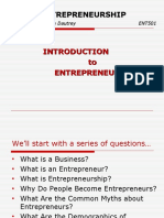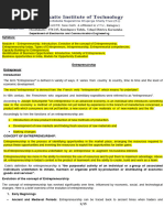 of small venture owners with Web site have declared the ability to reach new and potential customers as their main reason for having one. The most immediate obstacle facing companies that seek to fully implement e-commerce is the cost. Experts estimate that a small business would need an initial investment of $10,000 to launch an e-commerce site and approximately 20 percent of the launching funds to maintain it annually. The technical barriers involve both personnel and data. The opportunities during this century will be immense. Entrepreneurial opportunities will continue to arise for individuals willing to take the risk. As we will see throughout the following chapters, the discipline of entrepreneurship can be learned to better prepare oneself to take advantage of such an entrepreneurial opportunity. LECTURE NOTES THE ENTREPRENEURIAL REVOLUTION I. EntrepreneursChallenging the Unknown A. Individuals recognize opportunities where others see chaos or confusion. B. They are compared to Olympic athletes, symphony conductors, or top gun pilots. Entrepreneurs/ Small Business Owners: A Distinction A. The terms entrepreneur and small business owner are used interchangeably, but there are differences. B. Small businesses are not dominant in their field and are not innovative. C. The objectives of entrepreneurial ventures are innovation, profitability and growth.