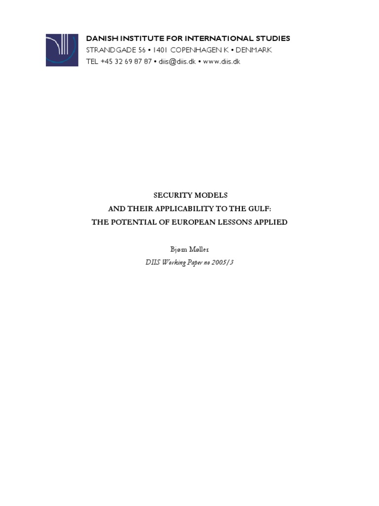 SECURITY MODELS AND THEIR APPLICABILITY TO THE GULF: THE POTENTIAL OF EUROPEAN LESSONS APPLIED Bjrn Mller DIIS Working Paper no 2005/3