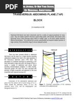 10. Webster, K, Hubble, S. Rectus sheath analgesia in intensive care patients: technique description and case series. Anaesthesia and Intensive Care 2009; 37: 855. 11. Webster K. The transversus abdominis plane (TAP) block: abdominal plane regional anaesthesia. Update in anaesthesia 2008; 24,1: 24-9. 12. ODonnell BD, McDonnell JG, McShane AJ. The transversus abdominis plane (TAP) block in open retropubic prostatectomy. Regional Anesthesia and Pain Medicine 2006; 31: 91. 13. McDonnell JG, ODonnell B, Curley G et al. The analgesic efficacy of transversus abdominis plane block after abdominal surgery: a prospective randomized controlled trial. Anesth Analg 2007; 104: 193-7. 14. Hebbard P. Subcostal transversus abdominis plane block under ultrasound guidance. Anesth Analg 2008; 106: 674-5; author reply 675. 15. Gould TH, Grace K, Thorne G, Thomas M. Effect of thoracic epidural anaesthesia on colonic blood flow. Br J Anaesth 2002; 89: 446-51. 16. Dolan J, Lucie P, Geary T, Smith M, Kenny G. The rectus sheath block for laparoscopic surgery in adults: a comparison between the loss of resistance and ultrasound guided techniques. Anaesthesia 2007; 62: 302.