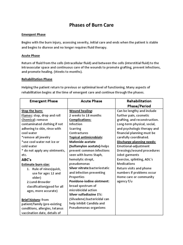 Phases of Burn Care