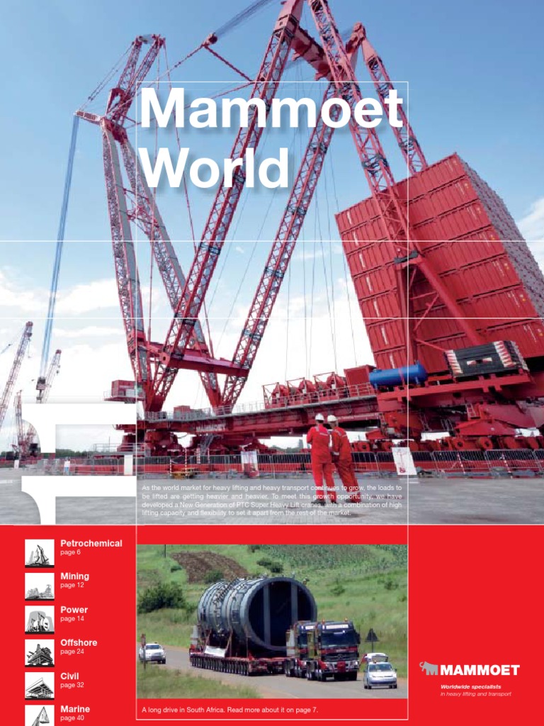 Mammoet World Missing? You can order available back issues by sending an e-mail to corporate.communication@mammoet.com, stating which issue you wish to receive, together with your name and the address to which the Mammoet World(s) should be sent.
