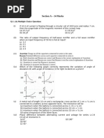 Q.28: (a) A prism can produce minimum deviation in a light beam. If three such prisms are combined, what will be minimum deviation produced in this beam? (1) (b) Show that if the angle of the prism is twice the critical angle of glass, there will be no emergent ray. (2) (c) A ray enters a glass sphere of R.I. n = at an angle of incidence 600 and is reflected and refracted at the farther surface of the sphere. Calculate the angle between the reflected and refracted ray at this surface. (2) Q.29: (a) Draw the graph for the following once it passes through a half wave rectifier. Draw the corresponding detailed circuit. On what principle does it work? (1 + 1.5 + 0.5) www.cbseguess.com Other Educational Portals www.icseguess.com | www.ignouguess.com | www.dulife.com | www.magicsense.com | www.niosguess.com | www.iitguess.com